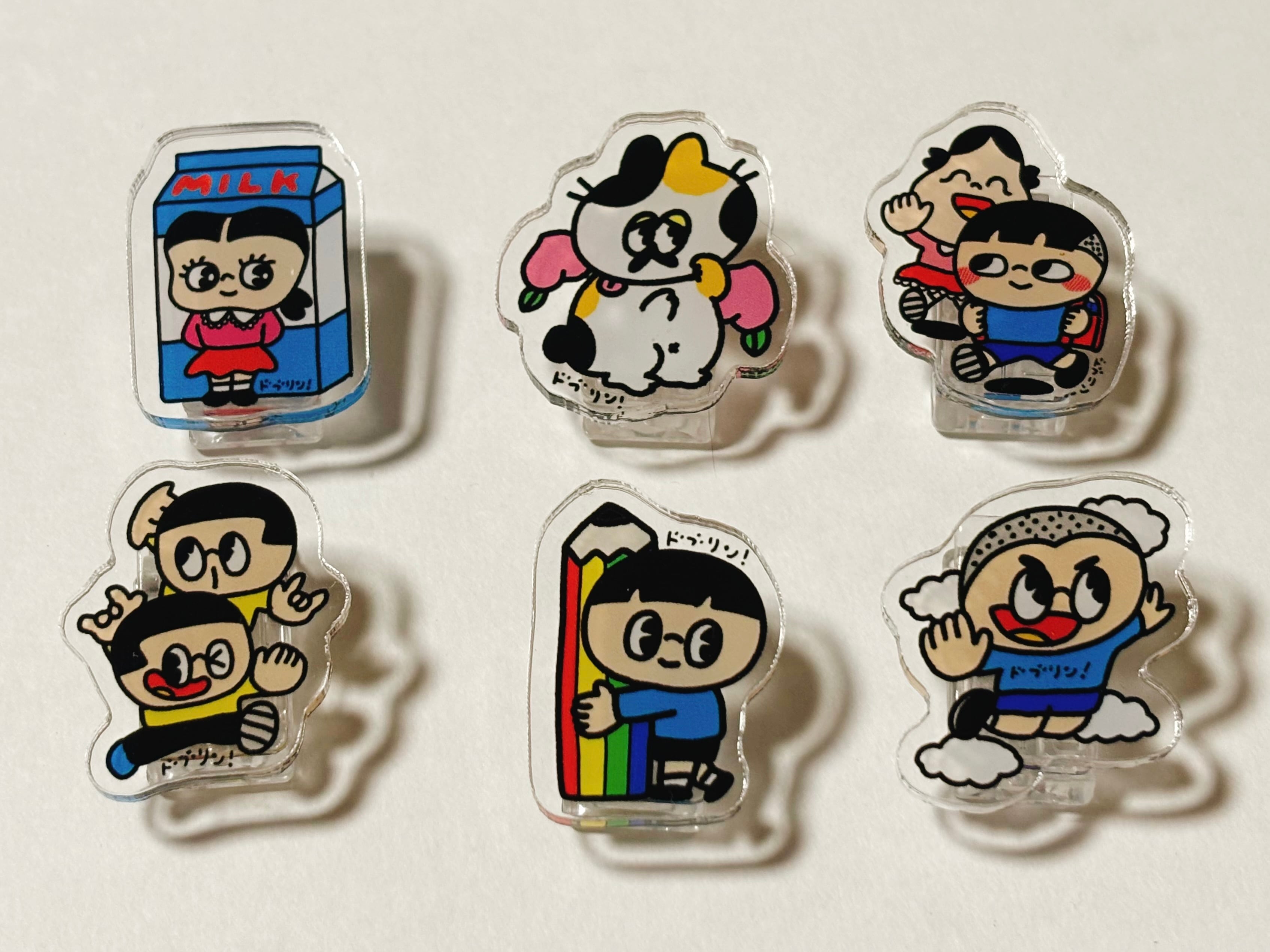 単行本『さっちゃんとふくちゃんの5円玉』と短編「アントのバラード」に登場するキャラクターたちのクリップが6種入ったセットです。